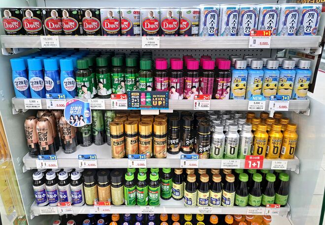 酒好きの多い韓国では、二日酔い市場(しじょう)とでも呼ぶべきものが存在する。二日酔い対策ドリンクはそのひとつで、コンビニに行けば、10種類以上の商品が並んでいる。