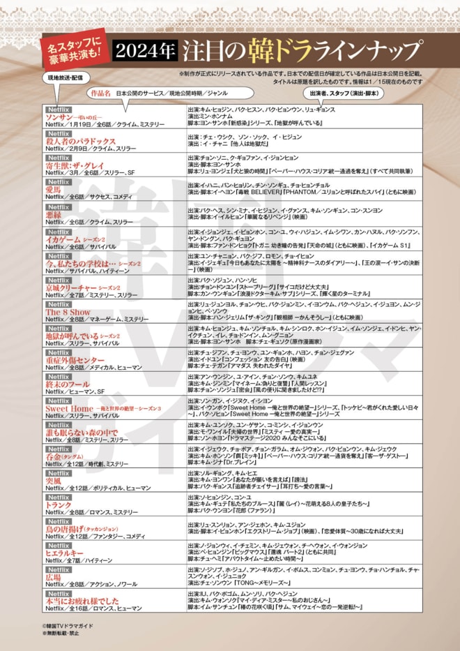 2024.1.13 Netflix1月&2月配信、Kスリラーから胸キュンラブコメまで一挙紹介!『花郎』パク・ヒョンシク新作、チェ・ウシク×ソン・ソック初タッグ作も! 2023年は『ザ・グローリー〜輝かしき復讐〜』や『マスクガール』など、斬新な切り口の韓国ドラマが世界的にヒットしたNetflix。一方で、ジュノ(2PM)×ユナ(少女時代)主演の『キング・ザ・ランド』をはじめ、ラ…