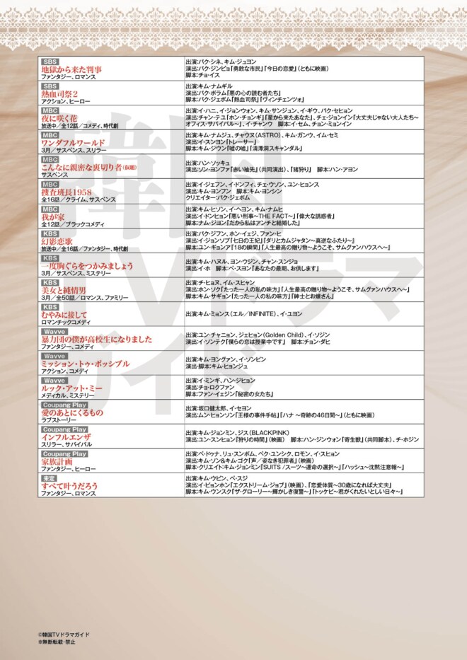 2023.12.29 “優しい男”の時代?! 転生ロマンス盛況、社会の闇も…2023年韓国ドラマ総決算!『ムービング』『マスクガール』『マイ・デーモン』他【韓ドラマニア対談】 ドラマは時代を映し出す鏡だ。その年に作られた作品、話題となった作品を見ていくと、どんなものが求められたのか自然と見えてくる。 創刊18周年を迎えた韓流エンタメ情報誌『韓国TVドラマガイド』編集部では、202…