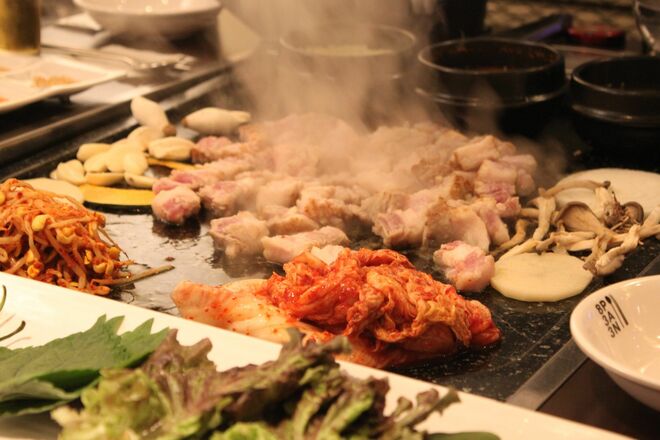 サムギョプサルは専門店で食べるものと思っている日本の人がいるかもしれないが、韓国では雑居ビルの地下にある小さな大衆食堂でも食べられる。