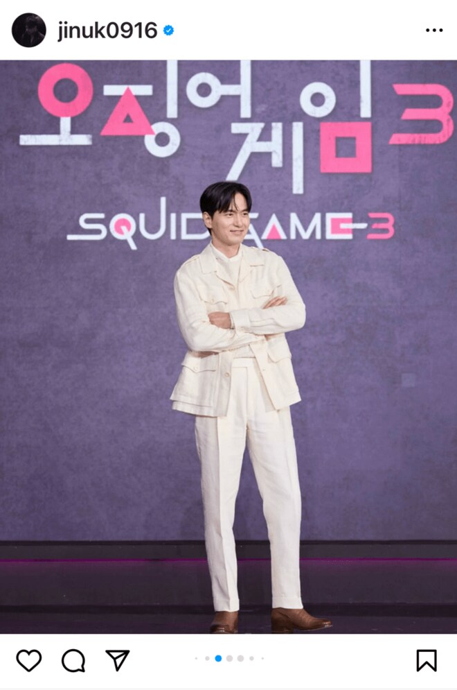 韓国TVドラマガイド ONLINE 連載一覧 韓国人紀行作家チョン・ウンスクの韓流談義fromソウル Netflix『イカゲーム』シーズン3の注目脇役は?似顔絵描きでシングルファザー役の大人イケメン俳優イ・ジヌク、怪しいムーダン役のチェ・グッキ【韓流談義fromソウル】 3ページ目 Netflix『イカゲーム』シーズン3の注目脇役は?似顔絵描きでシングルファザー役の大人イケメン俳優イ・ジヌク、怪しいムーダン役のチェ・グッキ【韓流談義fromソウル】 チョン・ウンスク 2025.7.3 ■【画像】大人の甘いイケメン俳優イ・ジヌク、白スーツ姿が爽やかな『イカゲーム』シーズン3会見フォト! ※画像はイ・ジヌク公式インスタグラム(@jinuk0916)より 画像の記事に戻る 韓国人紀行作家チョン・ウンスクの韓流談義fromソウル(346本公開中) 1 2 3