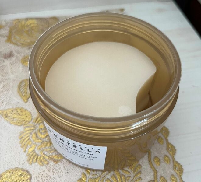 実際に、筆者も自宅で『センテラ クイックカーミングパッド』を体験。朝の洗顔直後、メイクの10分程度前に使用してみた。開封すると、美容液をたっぷり含んだ薄いトナーパッドがぎっしり。大判サイズで丸いパッドの一部に凹みがあるため、目の下や口元にもしっかりフィットし、時間のあるときは部分パックとしても便利だ。ベタつきのないサラッとした使用感で、メイクの仕上がりに影響することもなく、快適な使い心地。配合されたツボクサエキスのおかげか、赤みや火照りが落ち着いたように感じた。