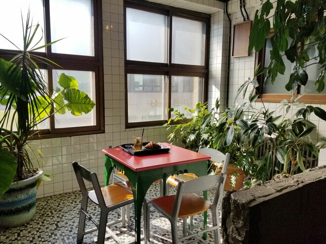 ソウルへ続く道なので、1883年の開港以降は「京城通り」と呼ばれ、1920年末前後には、商圏として大きく発展した場所だ。当時は呉服店、洋画店、薬局が軒を連ねていたという。現在は、ニュートロブームにのって、レトロなビルをリノベしたカフェやレストランが出店している。