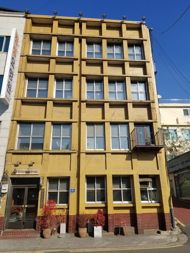 『テプン商事』の劇中、会社が入っている建物はソウル・乙支路4街にあるという設定だ。撮影に使用されたビルは、実際には韓国北西部・仁川広域市の「サリジェ峠」にある。元・耳鼻咽喉科だった建物をリノベーションしたBrown Handsというカフェで、黄色いレンガ張りの外観が印象的だ。