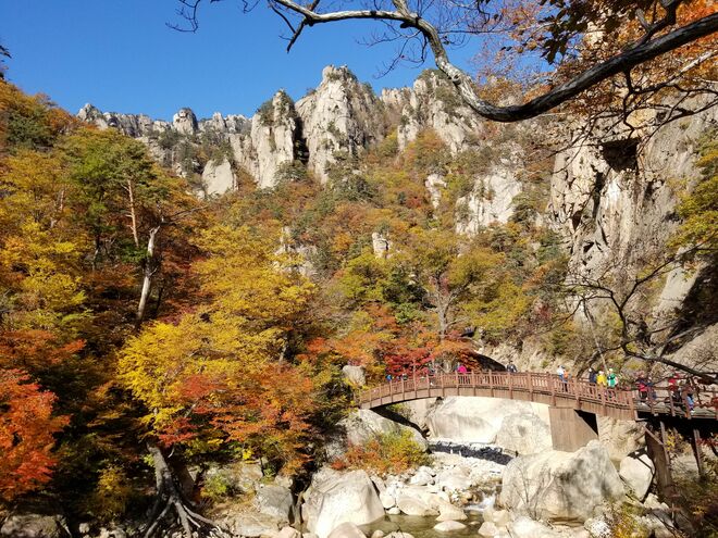 比較的アップダウンが少なく、初心者でも楽しめるコースで、韓国らしいごつごつとした岩山を眺めながらのトレッキングは、大変気持ちがよい。特に秋には特産品の松茸料理と美しい紅葉を楽しむために、大勢の観光客が襄陽を訪れる。