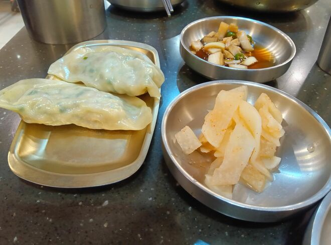 11時に行ったのに、すでに店の前で待つ人たちがいた。店内をのぞくとテーブルは満席。店は江南のオフィス街にあった。店内や店の前で待つ人を見ると、ビジネスマンらしい人が何人もいる。ソウルのサラリーマンはなんという優雅な昼食を食べているのかと思った。日本のサラリーマンは、コンビニ弁当をオフィスの机で食べる人が少なくない。