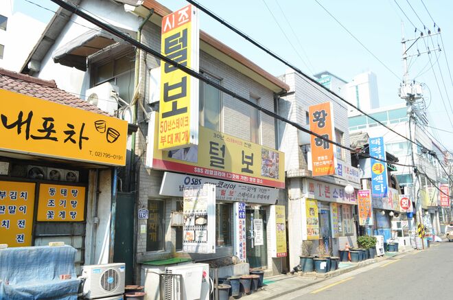 しかし、どんな物語であろうが史実は史実。チョン・ジヒョンとチャ・テヒョンが共演した往年の名画『猟奇的な彼女』に出てきたプデチゲ専門店(梨大に実在した)のように、店員が国防色のエプロンを着け、お客には「忠誠!」と軍隊式の挙手敬礼。店内にはヘルメット、軍靴、砂のう、鉄格子付き反省房などをディスプレイし、出自を堂々とアピールしたほうが潔い。