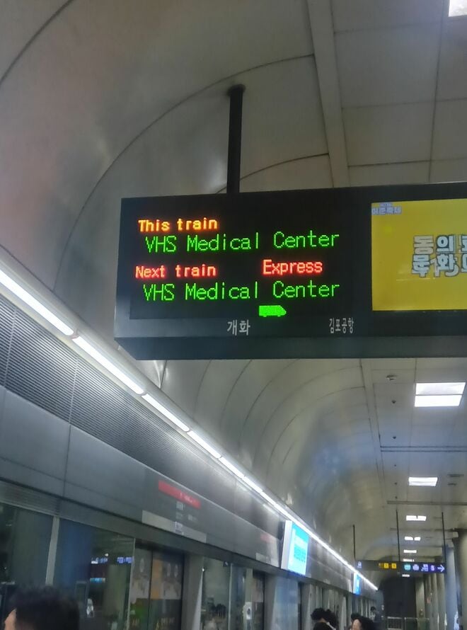 仁川国際空港から新論峴駅に向かってみた。路線図をみると金浦空港駅で9号線に乗り換えるようになっている。仁川国際空港から空港鉄道(A’REX)に乗った。金浦国際空港に着き、9号線乗り場を探した。エスカレーターを利用しようとすると、矢印が横を向いている。