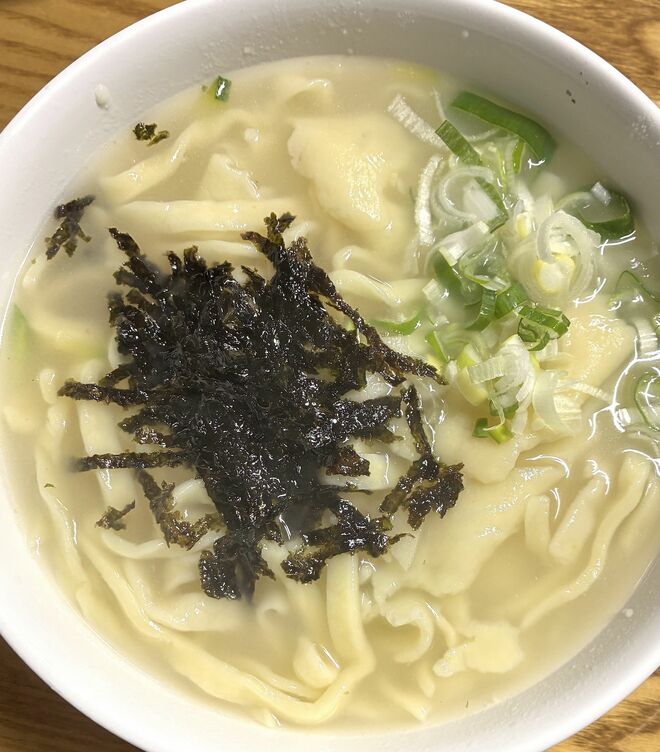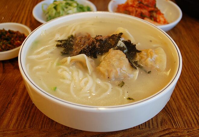そんなとき重宝するのがカルグクスの店だ。カルグクスは基本的に唐辛子を使っていなし、スープにニンニクが使われていたとしてもごく少量。サイドメニューのマンドゥ(餃子)やスジェビ(すいとん)も同様である。