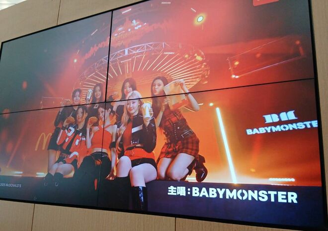 BABYMONSTERとマクドナルドのコラボ企画。香港国際空港の店内モニターではBABYMONSTERの動画が流れていた 撮影/鄭孝俊