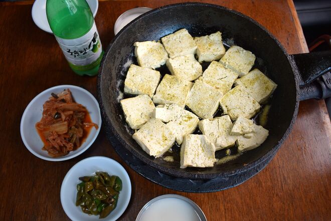 ソン・シギョンは豆腐チヂミ(店のメニュー名)を「豆腐ステーキ」と呼んでいたが、ステーキという言葉には “ごちそう” 感があるので、豆腐を副菜扱いしがちな日本人には「豆腐をステーキと呼ばれてもなあ……」という感じではないだろうか。