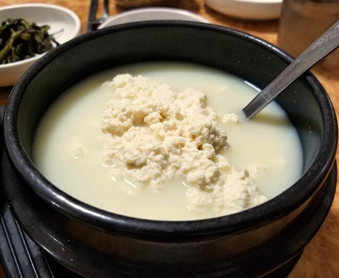 では韓国の大豆料理はどうだろう? テンジャンチゲ(味噌鍋)、チョングッジャン(納豆鍋)、スンドゥブチゲ(純豆腐鍋)、ビジチゲ(おから鍋)、トゥブクイ(焼き豆腐)。夏はコンククス(すりおろし大豆のスープ麺)もある。日本よりは主菜クラスが多そうだ。