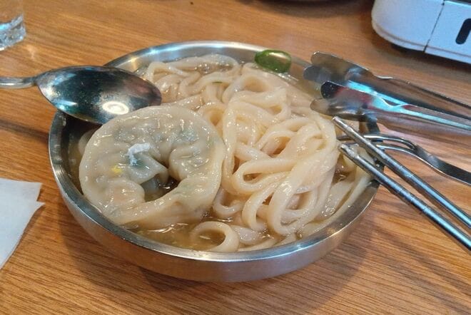韓国の鍋を食べて思うのは、〆の料理まで計算されているということだ。日本の鍋も最後におじやにしたり麺を入れたりするが、どこかそこにはオプションという雰囲気がある。しかしソウルのそれは、麺まで食べて鍋料理という流れが確立している。それに合わせた量にもなっているのだ。