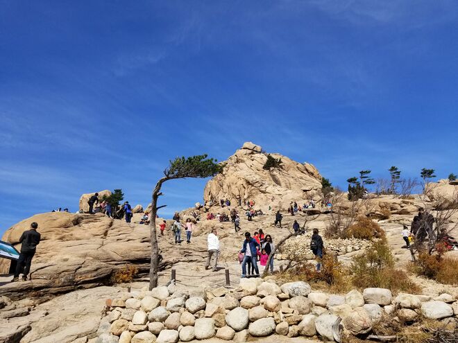 ケーブルカーを降り、右手の階段を10分ほど上ると、周囲約3500メートルの天然岩城址である権金城(クォングムソン)の烽火台が見える。権金城が最初に築かれた時期は定かではないが、高麗時代末期に元(モンゴル)が侵入した時に、この岩城に避難したという記録が残されているという。