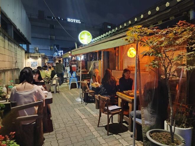 この辺りに宿をとれば、平壌冷麺の老舗「乙支麺屋」、豚ハラミの「味カルメギサル専門」、マッコリとジョンの「ヘンボッカンチプ」、テジクッパの「全州チプ」、ソン・ガンホが『パラサイト 半地下の家族』のクランクアップ後に打ち上げを行ったマッコリバー「遊牧民」、焼魚定食の「全州食堂」、牡蠣ポッサムの「サメチプ」、シュポ(韓国式角打ち)の人気店「ソウル食品」や「ヨングァン食品」が徒歩10分圏内。