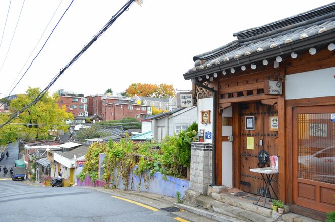 また、名匠ホン・サンス監督が2014年に撮った映画『自由が丘で』では、加瀬亮扮する主人公が韓式旅館に滞在し、北村のカフェやバーで無為な時間を過ごすシーンが撮影されている。