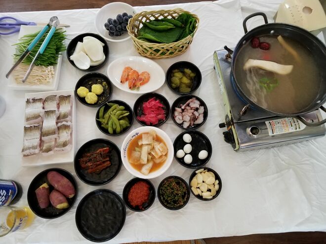 麗水本土からフェリーで5分足らずの場所にある大鏡島は、別名「鱧(ハモ)の島」と呼ばれ、水揚げされたばかりの新鮮な鱧のしゃぶしゃぶを提供する食堂がある。