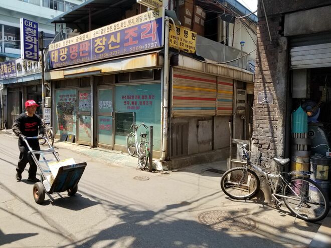 夜遅くまで響く印刷や製本機械の音、金属を削る音、忙しく出入りするオートバイの音などを聞いていると、韓国の経済発展を支えてきたのはサムスンやLGなどの大企業ばかりではないことが実感できる。