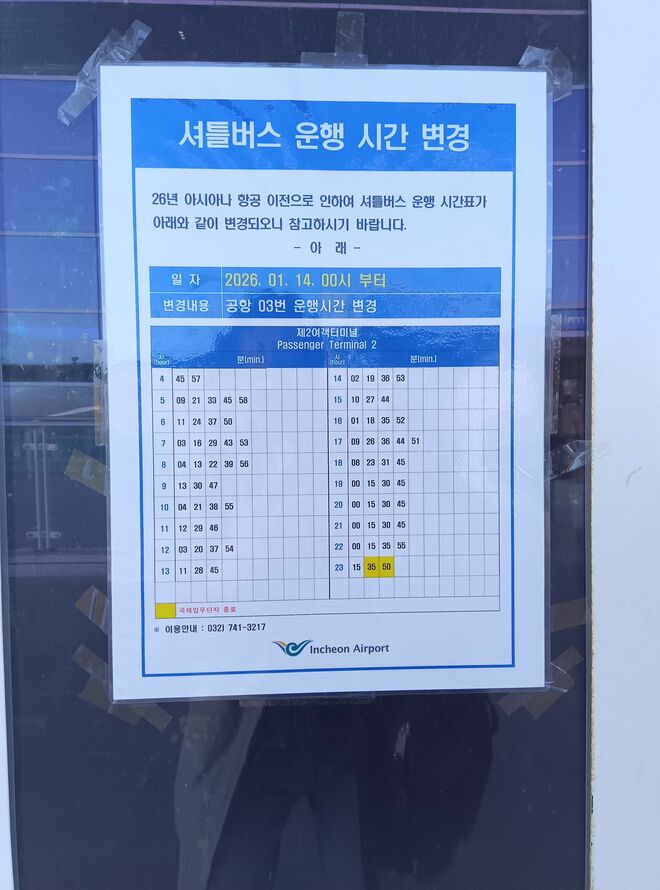 仁川国際空港の第1ターミナルと第2ターミナルの間には、無料のシャトルバスが運行している。これに乗ると、だいたい20分ぐらいかかる。途中には林が広がり、車窓を眺めながら、「けっこう遠いな」と呟くことになる。運行本数もそう多くない。昼間の時間帯の運行間隔は10分から20分に1本といったところだ。