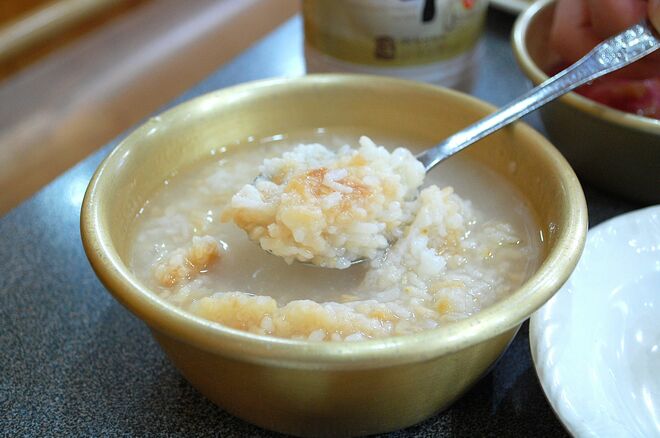 韓国では、釜底のおこげを削り取っておせんべいのように食べたり、お湯をかけてお粥のように食べたり、お茶のように飲んだりする。味付けはしない。韓国料理には刺激の強いものが少なくないので、これがいい口直しになる。インスタントラーメンのようにカップに入ったものも売られている。