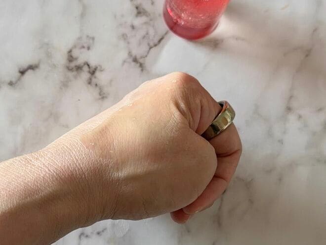 パッドを剥がしたあとには、水光肌を育む美容液をしっかり浸透させて。このときに、ただ塗るのではなく、ツヤを出したい部分を軽くプッシュするように重ね塗りをすると◎。