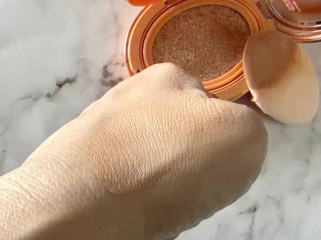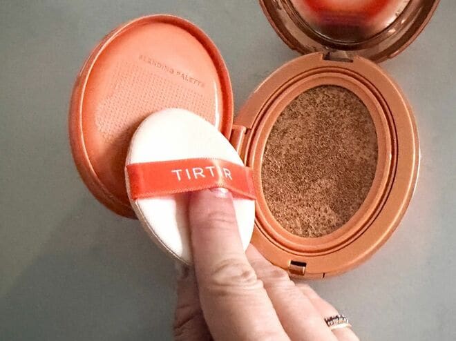 パフに取った後、一度フタの裏で馴染ませるとムラなく広げやすい塗り方に◎。このひと手間で時間が経った肌も差がつきます。