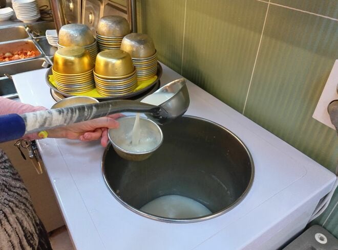 知人はメニューを指差した。それはメスカニ定食だった。メインはメスカニのカンジャンケジャンである。生エビの醤油漬け、ビビンバがつく。これにキムチとムール貝のスープの食べ放題、マッコリも飲み放題もついている。料金は1人前3万6000ウォン。約3860円。お得な気がしたが、メスカニのカンジャンケジャンは食べ放題ではない。