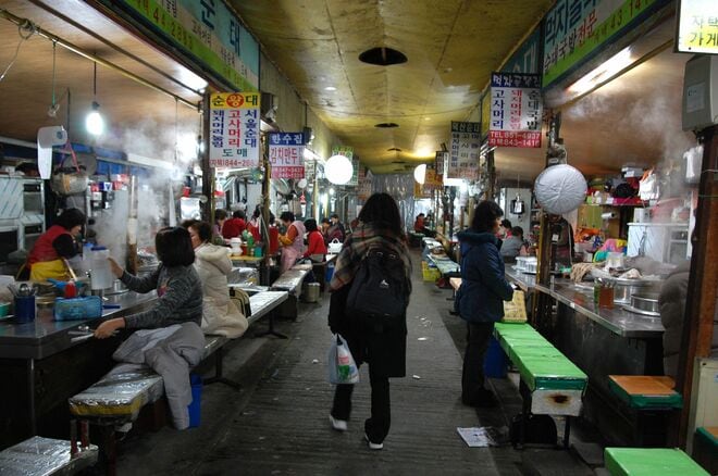 バスターミナルからそう遠くないところにある在来市場を一巡りしたら、市場に買い出しに来た地元民で賑わっている飲食店に入るといい。屋台でも固定店舗でもかまわない。店の人と目が合ったら、「アンニョハセヨ(こんにちは)」とあいさつしよう。地元民が店に入ってくるときは「アンニョハセヨ」などと律儀にあいさつしないし、その発音の不自然さから、すぐ外国人だと気づいてもらえるはずだ。