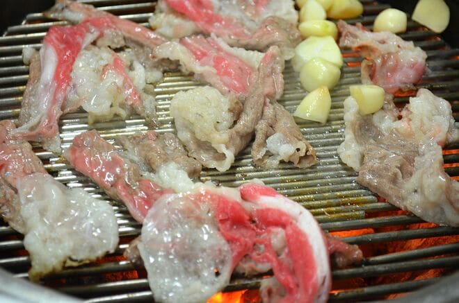 しかし、韓国でさまざまな料理を食べてきた人、とくに中高年には、ほどよい歯ごたえが小気味よく感じられるだろう。また、韓国の焼肉にはソジュという人にもおすすめ。脂の旨味と冷えたソジュは相性抜群だ。