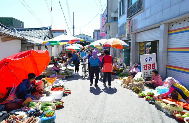 五日市は韓国語では「オイルジャン(5日場)」と言う。毎月2と7の付く日、3と8の付く日のように、5日ごとに立つ市場のことだ。