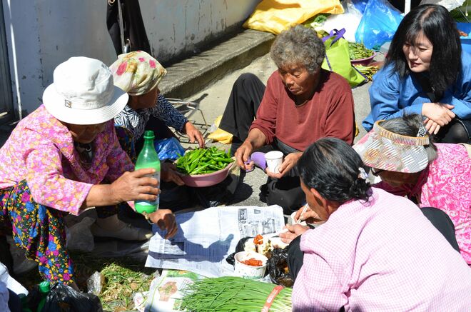 5日場の日は、地元の人にとっても心浮き立つ日だ。5月以降なら、窓を開け放ったローカル食堂で、昼間からマッコリを飲む中高年の姿も見られるだろう。彼らといっしょに酒を酌み交わすのはじつはそんなに難しいことではない。そんなとき、モノを言うのが笑顔とあいさつだ。
